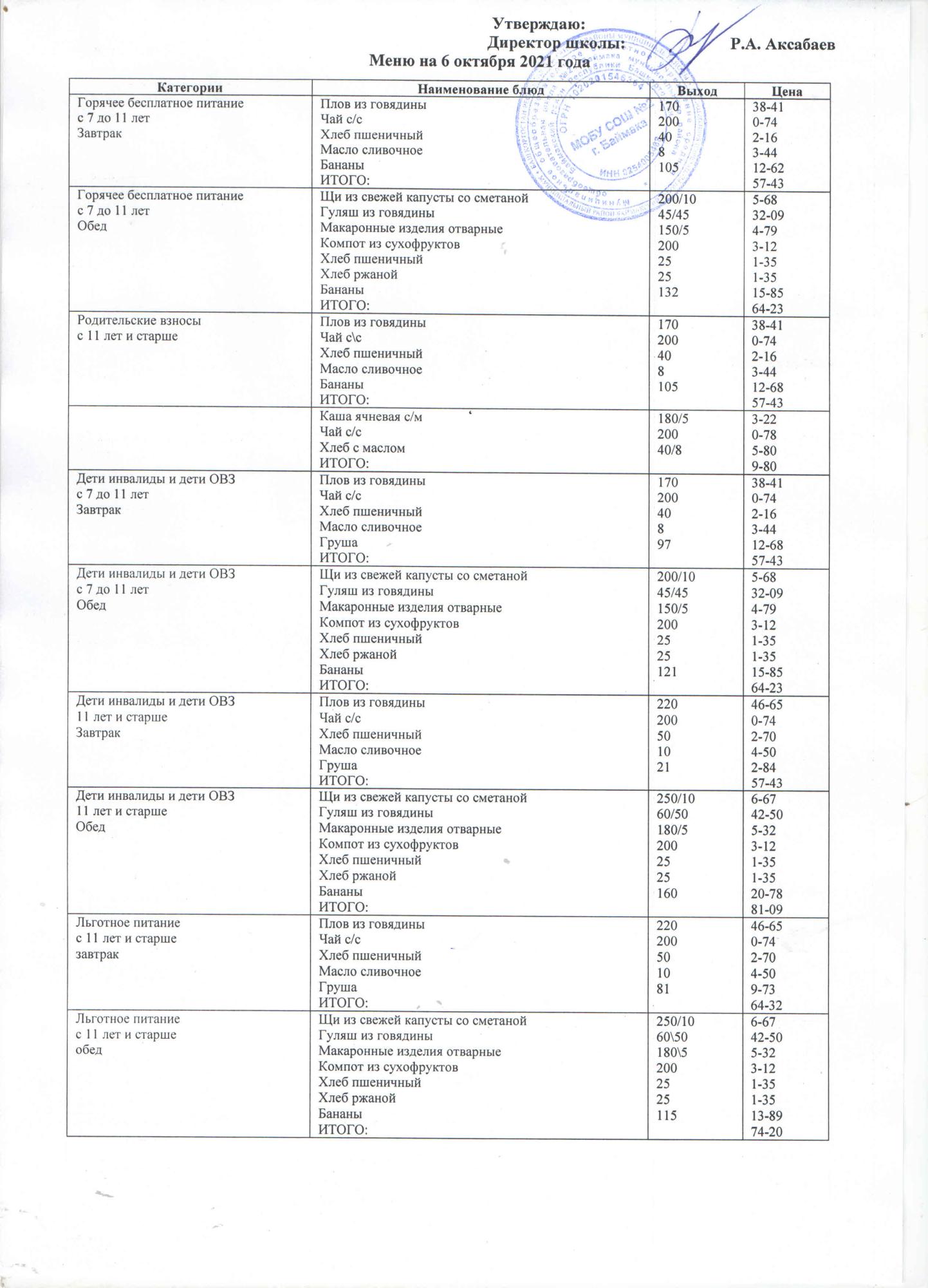 (Меню на 06.10.2021 г. )