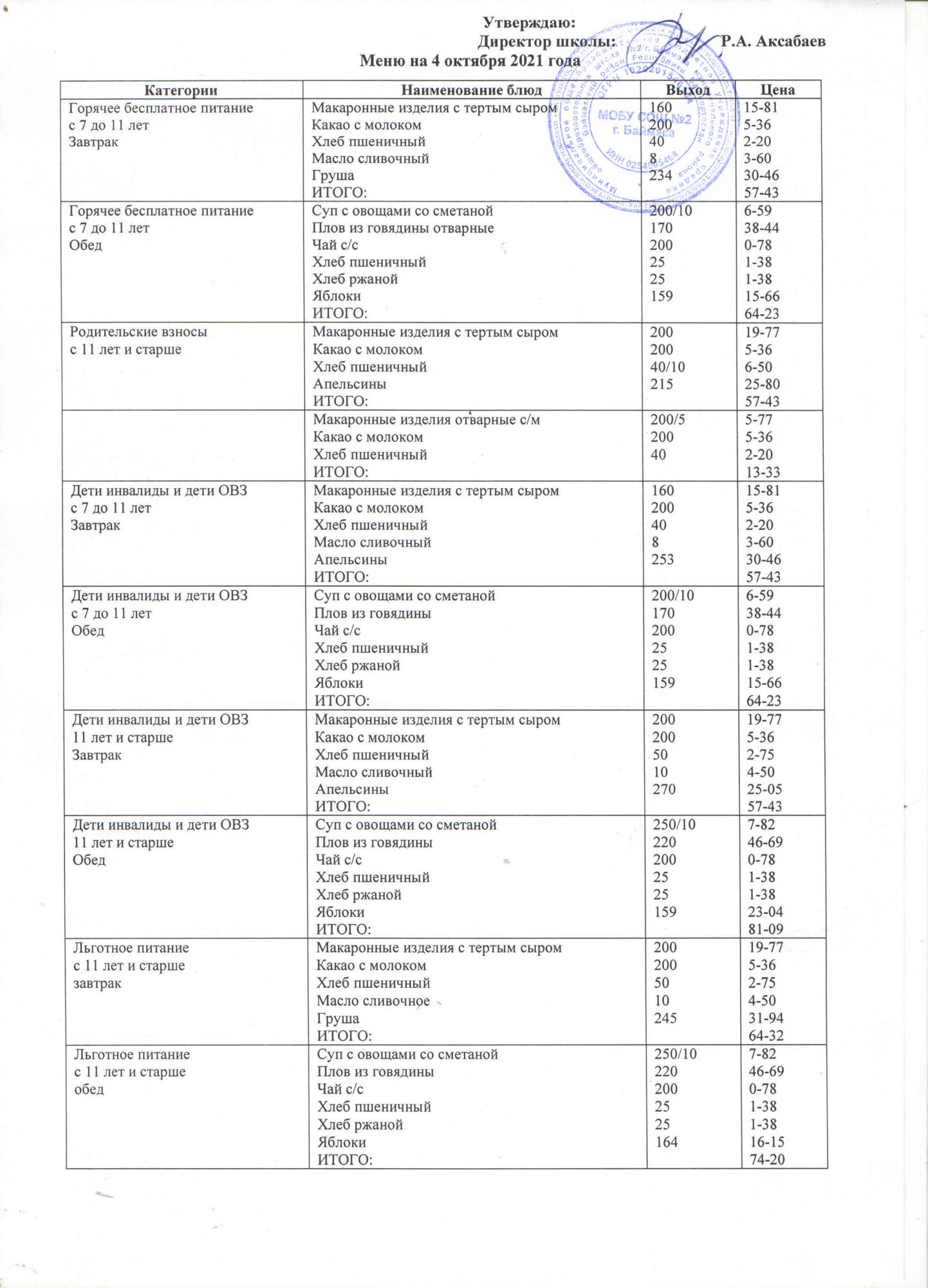 (Меню на 04.10.2021 г. )
