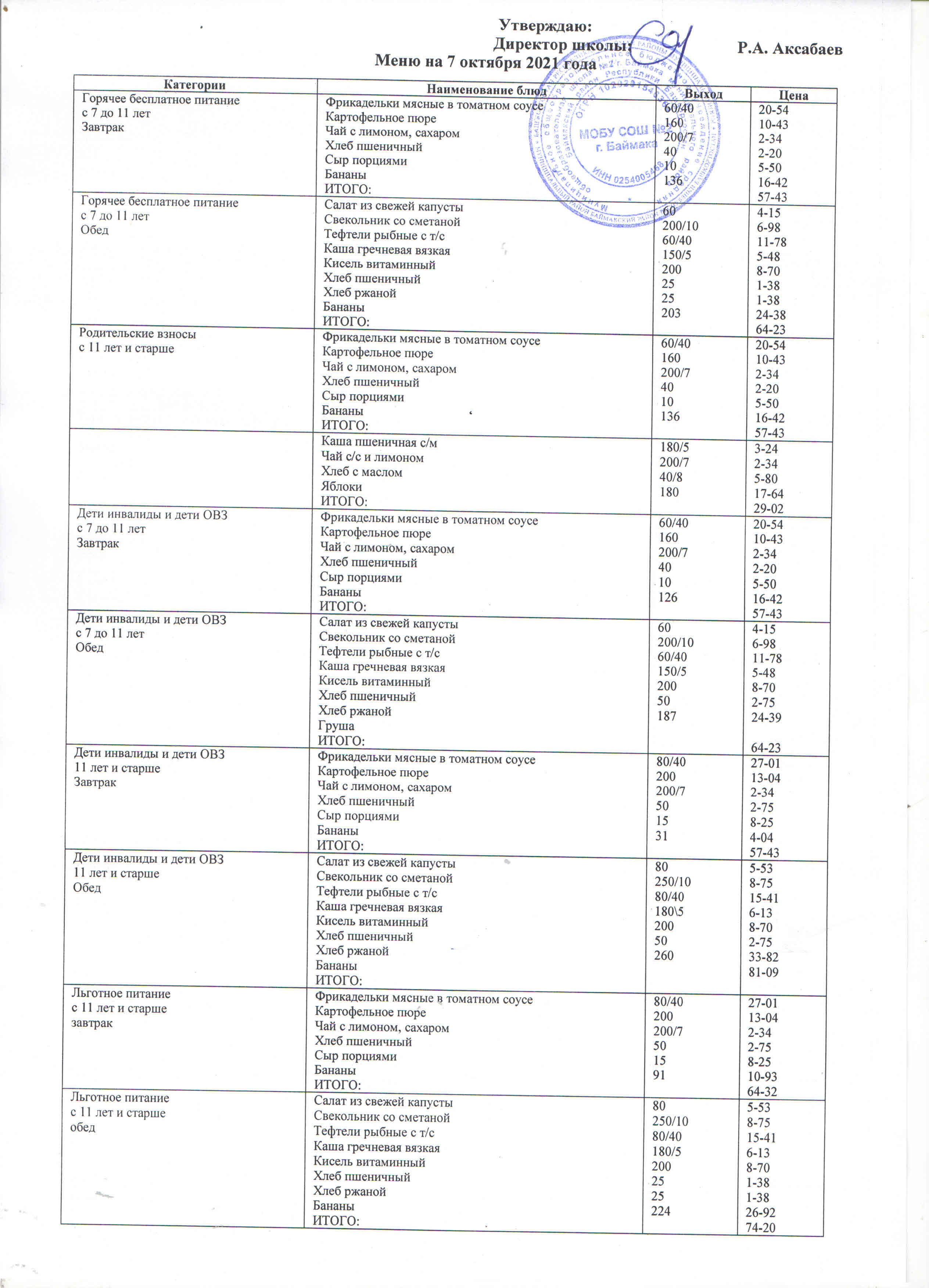 (Меню на 07.10.2021 г. )
