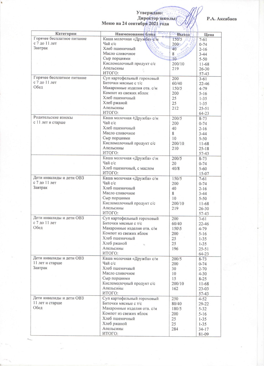 (Меню на 24.09.2021 г. )