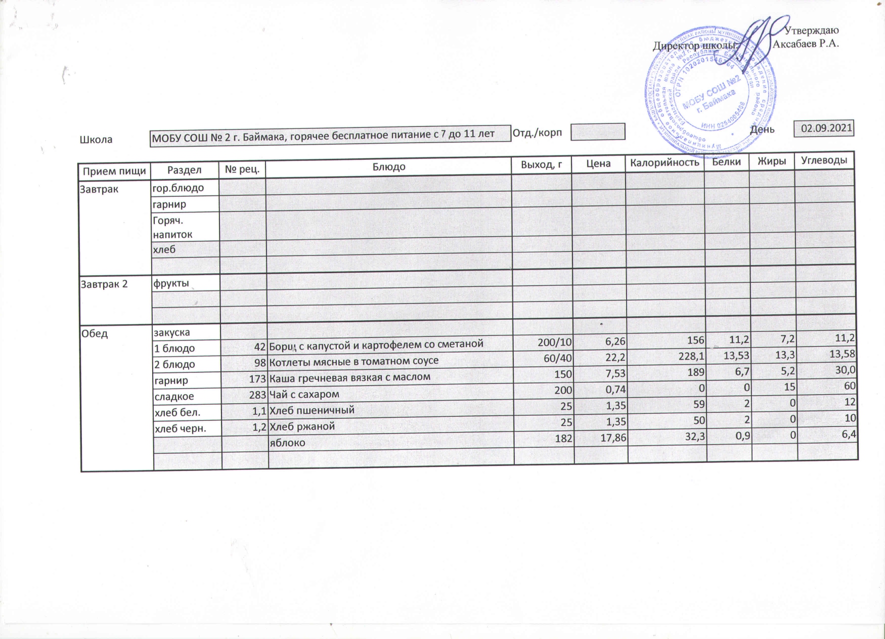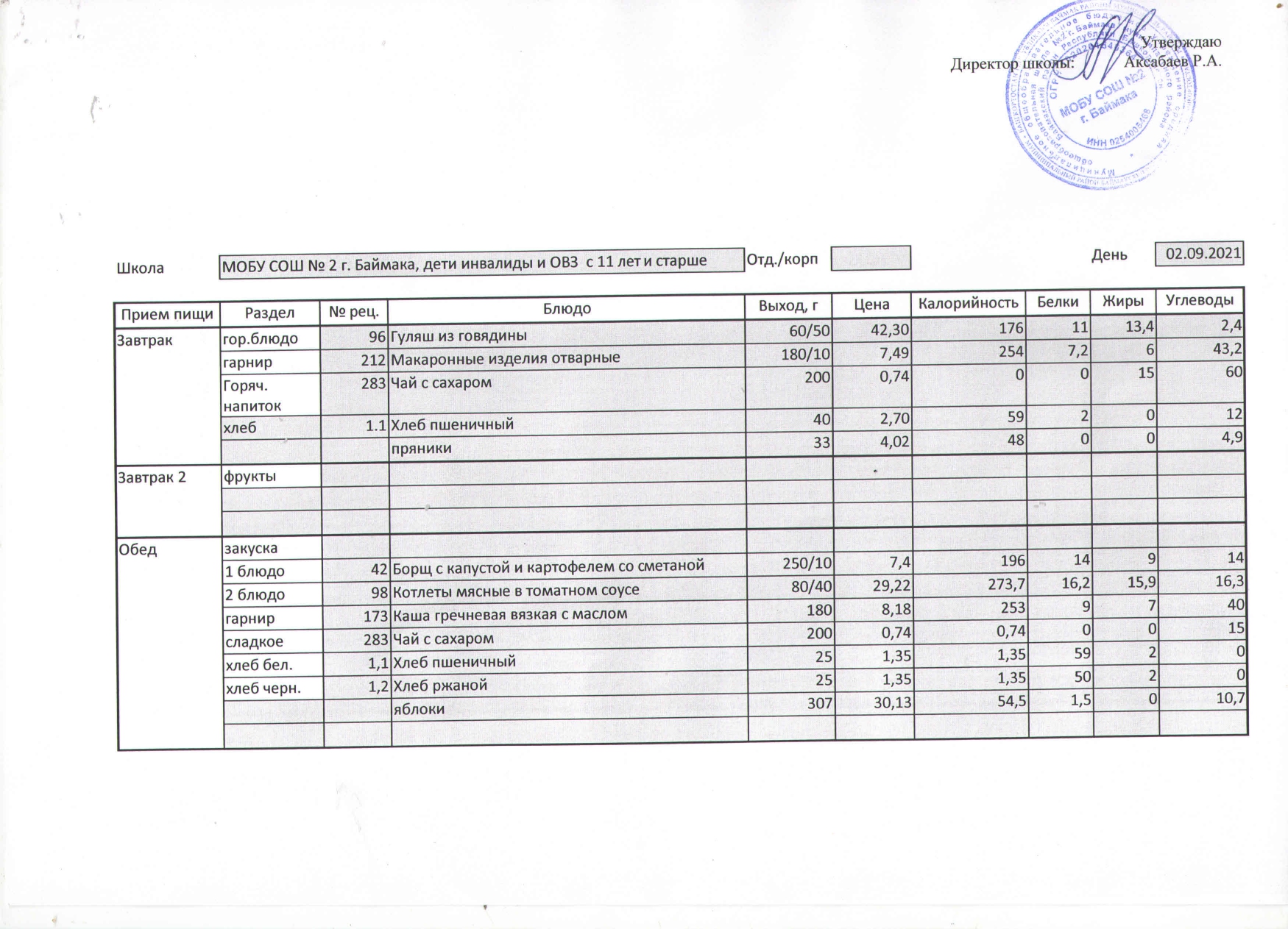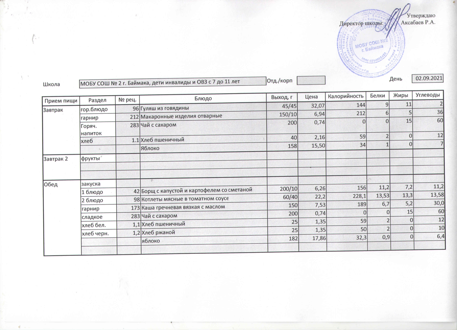 (Меню на 02.09.2021 г. )