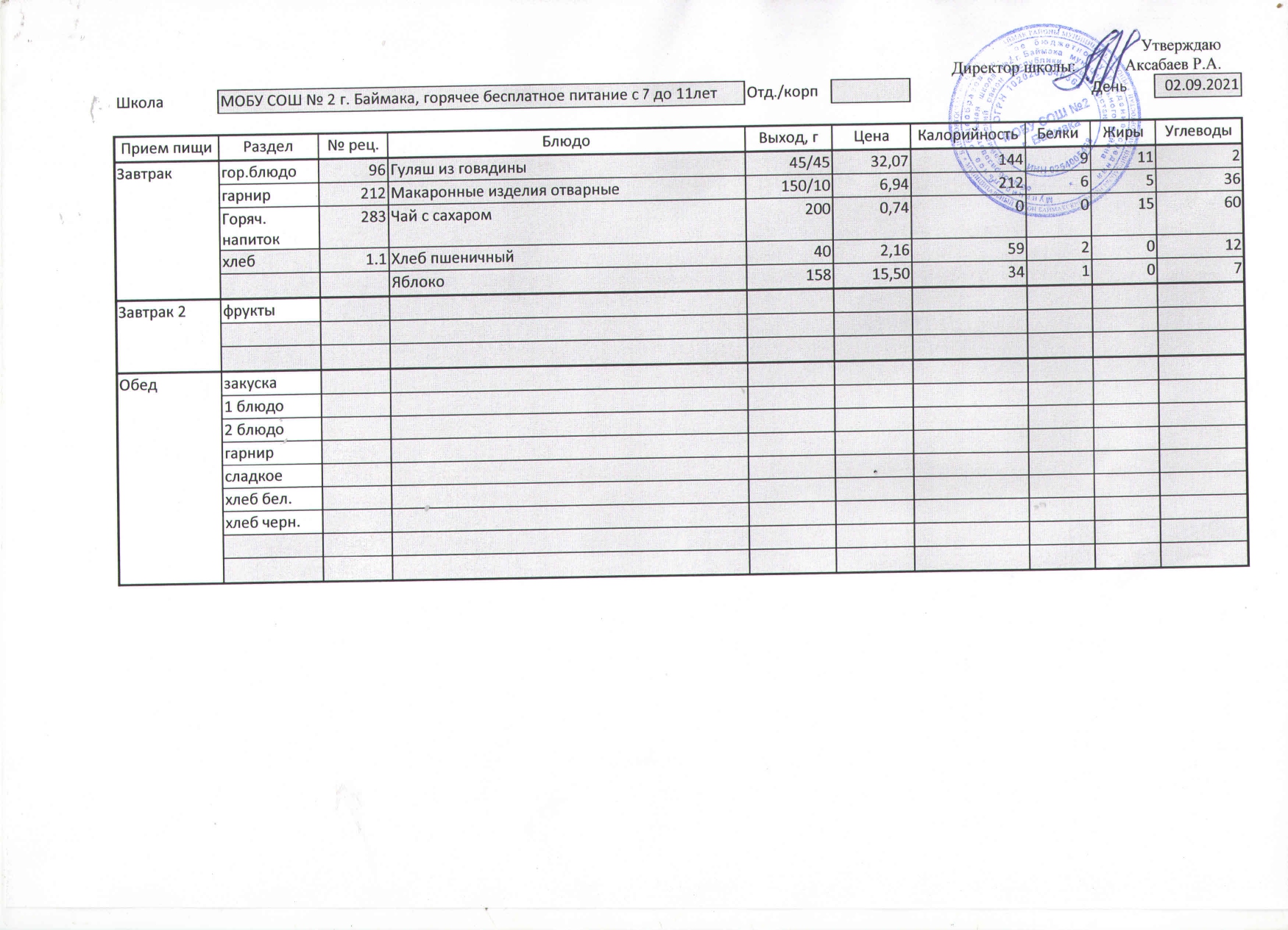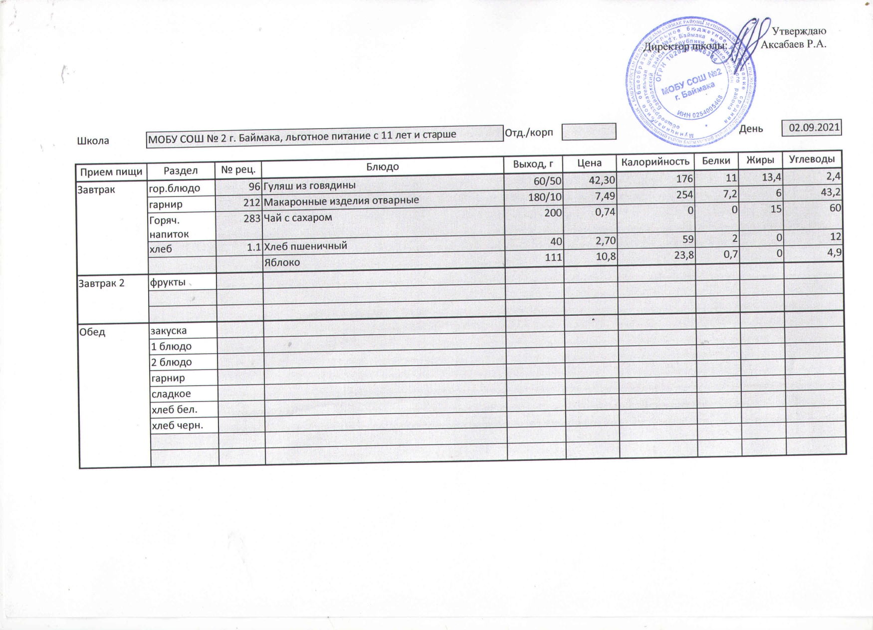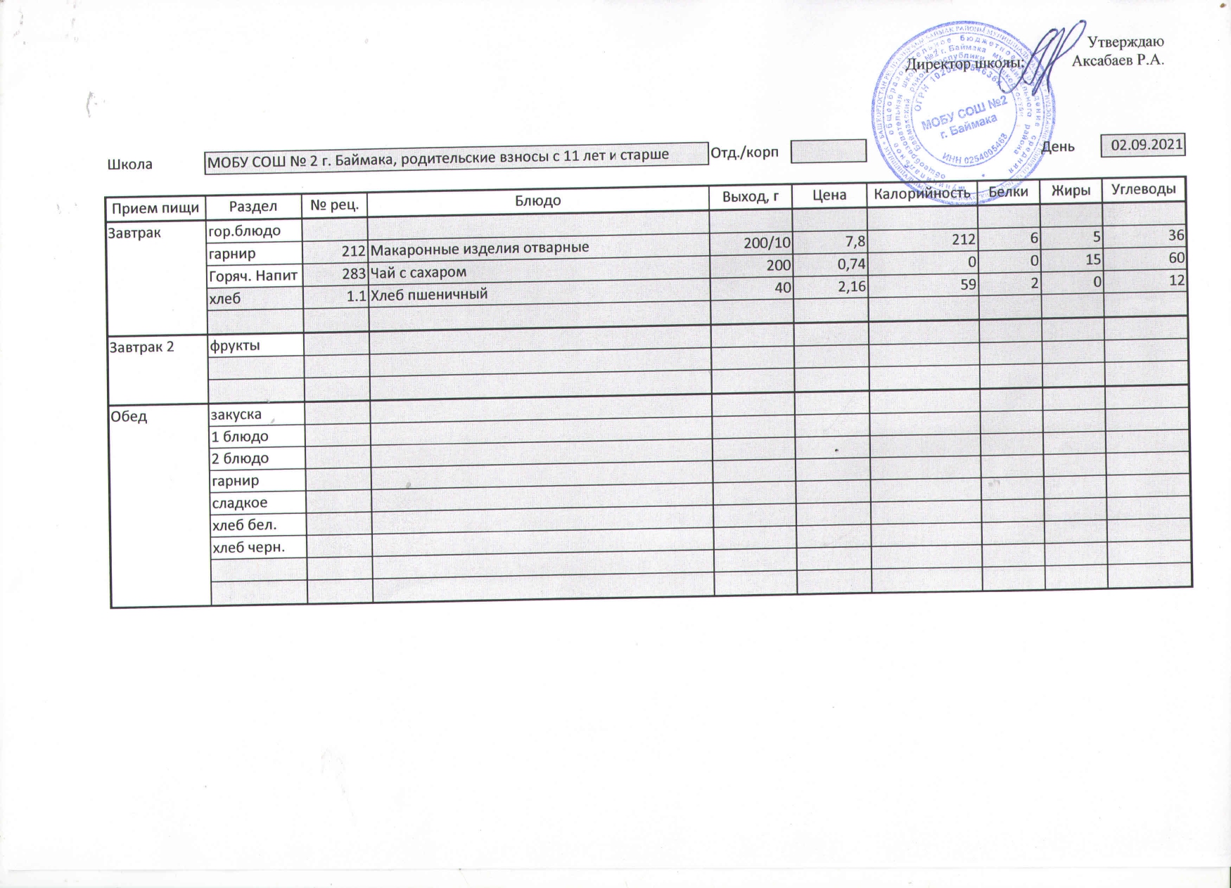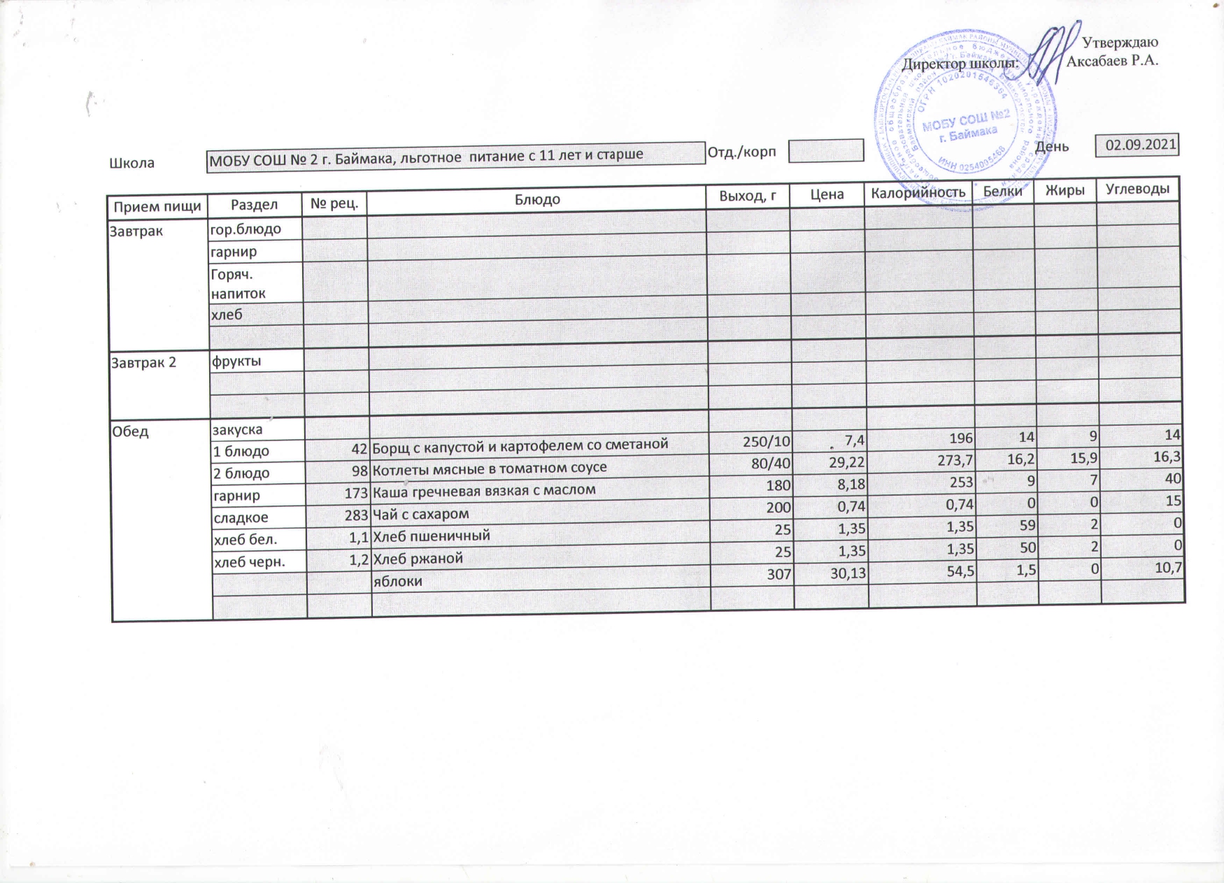 (Меню на 02.09.2021 г. )
