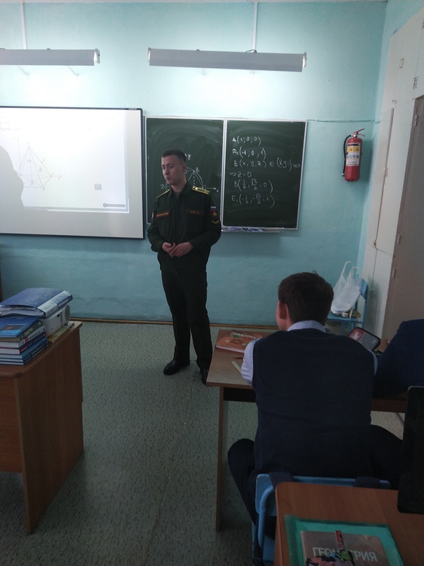 25 декабря 2018 г. состоялась встреча с выпускником 2018 г. Лычевым Виктором, курсантом 1 курса Военной академии материально-технического обеспечения им. Генерала армии А.В. Хрулёва в г. Омске с учащимися 11 класса. На встрече были затронуты актуальные на сегодняшний день вопросы о подготовке кандидатов на поступление, о вступительных экзаменах, о жизни и учебе курсантов.