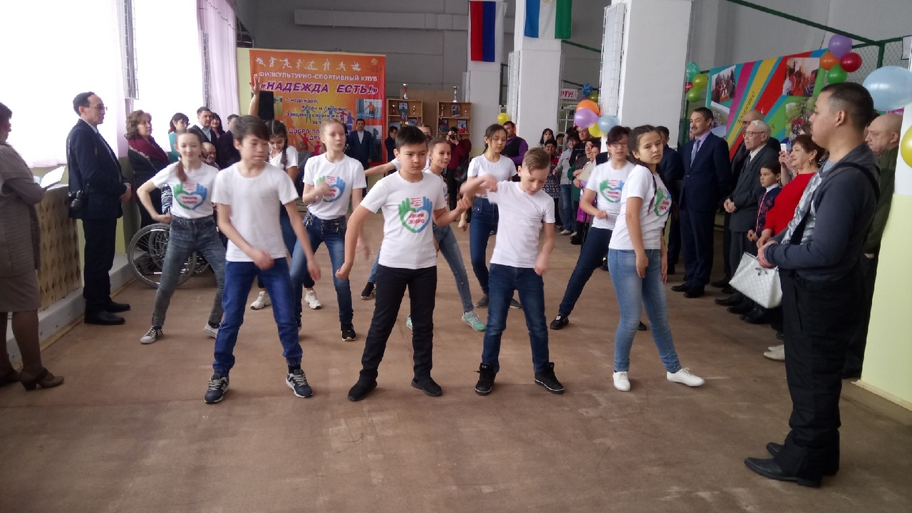 6 февраля волонтеры школы №2 г. Баймака приняли участие на открытии физкультурно - спортивного клуба общества инвалидов «Надежда есть!». Они порадовали своих друзей приветствием и подарили им современный танец.