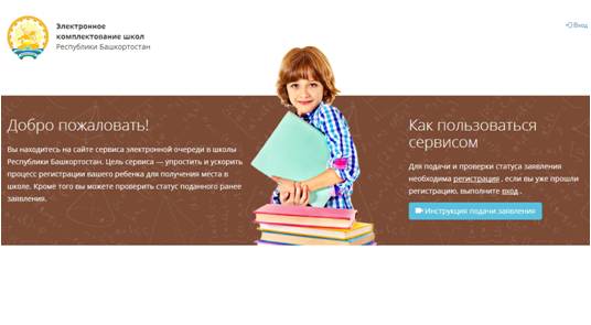 один из родителей (законных представителей) ребёнка подаёт заявление на сайте сервиса электронной очереди в школы Республики Башкортостан https://complect.edu-rb.ru«Электронное комплектование школ Республики Башкортостан» (регистрация обязательна). Цель сервиса: упростить и ускорить процесс регистрации вашего ребенка для получения места в школе. После заполнения данных и регистрации заявления родитель получит регистрационный номер, по которому он сможет самостоятельно получать информацию о статусе его обращения. После этого в течение 7 рабочих дней, не считая дня подачи заявления в «Электронное комплектование школ Республики Башкортостан» https://complect.edu-rb.ru, родитель (законный представитель) ребенка должен лично представить в школу документы, подтверждающие указанные им сведения: