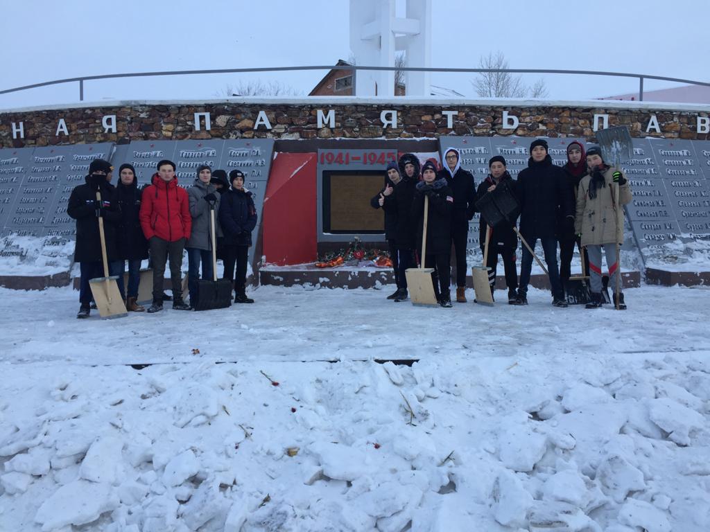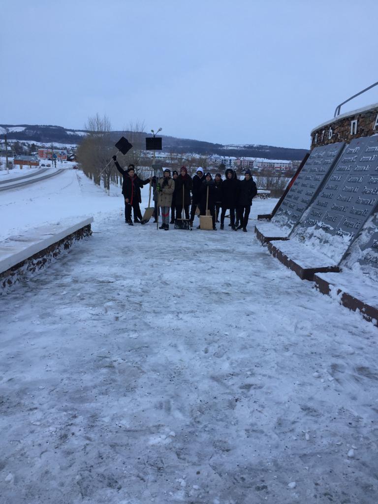 Сегодня, 23 января, учащиеся школы учавствовали в благотворительной акции по уборке территории от снега рядом с памятником, посвящённым заводчанам, погибшим во время ВОВ