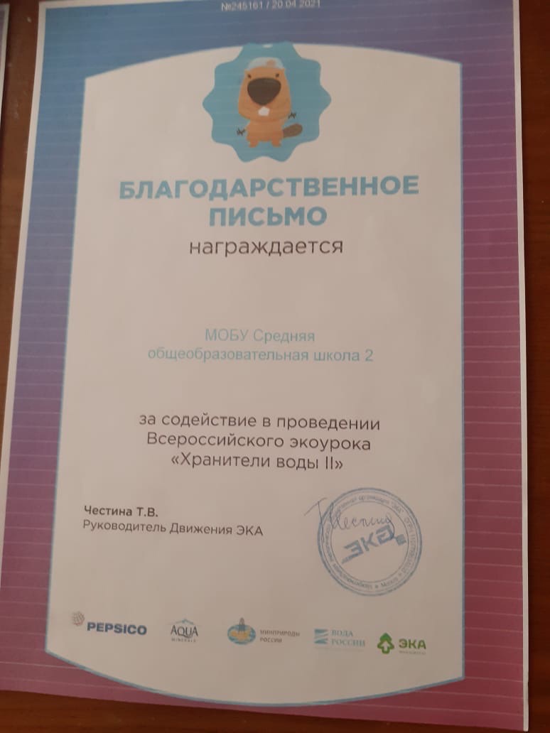 Учащиеся 9 классов МОБУ СОШ №2 под руководством учителя биологии Фисенко З.Н. участвовали в эколого - просветительской игре в рамках Всероссийского урока ,,Хранители воды".