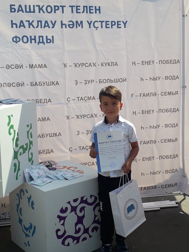 Юлгутлин Идель прекрасно пройдя муниципальный этап и отборочный тур республиканского этапа, вышел в финал. Он представил членам жюри армянскую народную сказку «Змея и рыба» на башкирском языке. Яркое выступление юного сказочника было отмеченоспециальным призом Фонда по сохранению и развитию башкирского языка. Сегодня Идель получил свою награду и похвальную грамоту.