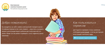 один из родителей (законных представителей) ребёнка подаёт заявление на сайте сервиса электронной очереди в школы Республики Башкортостан https://complect.edu-rb.ru«Электронное комплектование школ Республики Башкортостан» (регистрация обязательна). Цель сервиса: упростить и ускорить процесс регистрации вашего ребенка для получения места в школе. После заполнения данных и регистрации заявления родитель получит регистрационный номер, по которому он сможет самостоятельно получать информацию о статусе его обращения. После этого родитель (законный представитель) ребенка должен лично представить в школу документы, подтверждающие указанные им сведения: